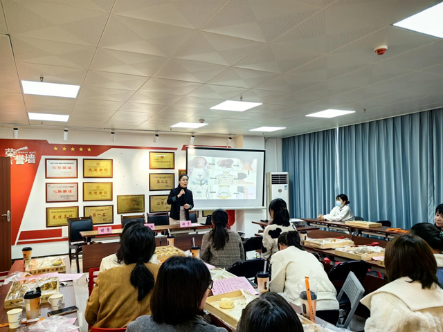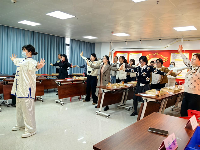 授課過程中,講師還為女職工設置了中醫文化體驗環節。專業的中醫養生教練身著傳統服飾,身姿矯健地站在前方,為女職工們示范八段錦的標準動作。“雙手托天理三焦,左右開弓似射雕……” 教練一邊口中念念有詞,一邊緩緩展示著一招一式,動作行云流水、剛柔相濟。練習過程中,女職工們屏氣斂息,專注于每一個動作的細節,感受著身體的拉伸與舒展,仿佛在一招一式間與古老的中醫養生智慧對話。八段錦不僅讓女職工們體驗到傳統健身方式的魅力,更在動靜結合中舒緩了身心壓力,調節了氣息。許多女職工表示,練習完八段錦后,身體微微發熱,整個人都神清氣爽,仿佛充滿了能量。